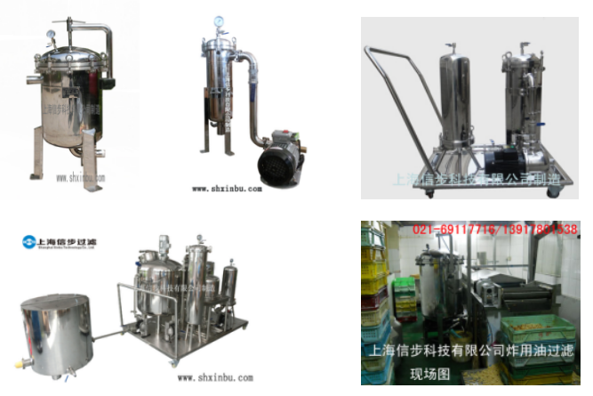 关于炸用油 信步牌shxb系列食用油过滤机具有过滤精度高、节省能源、操作简便等特点,很适合以油炸食品(如:薯片、下条、炸鸡炸鱼、方便面、沙琪玛、油炸果仁、罐头)等生产厂家,以及中、西餐饮行业、大行超市使用。一般油炸食品企业,在使用煎炸油两三天后,油已变黑变稠,酸价超标,不得不废弃。使用信步牌食用油过滤机后有以下功效: