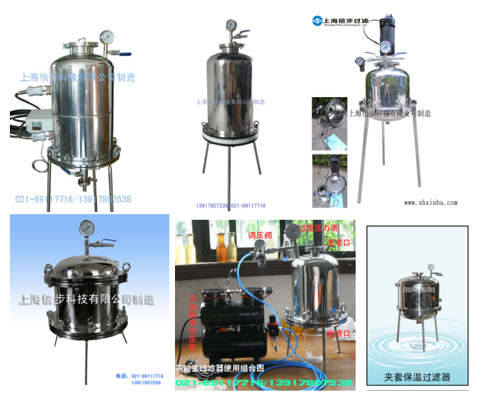 正压过滤器也可以做成电加热保温和夹套加热保温两种样式;许多液体为了获得良好的输送性能,或者因温度下降会结晶或凝固,通常在过滤时对其加热保温,以使过滤更加容易进行或满足下道工序对温度的要求,这时加热保温过滤器便是您的上佳之选。
