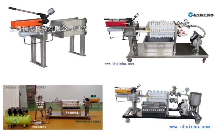 90%的用户采用信步的小型隔膜压滤机,其机架采用304不锈钢,牢固美观,手动液压压紧且可螺丝锁紧,保压压紧可靠,高压聚丙烯隔膜板,隔膜压榨效果好。小型隔膜压滤机可做小型生产和各类物料实验,操作简单,可耐酸碱、耐腐蚀,耐温70度,对多种物料都可实现过滤-洗涤-过滤-吹干功能(如洗涤可节水35%),小型隔膜压榨的优势是过滤彻底,固液分离完全,过滤后的固体物含水率低(固液分离时的固体物含水率在10%-60%以内),效能高,对最大化的出液率和固体物的最低含水率是其它过滤设备不可替代的选择。目前,我们推出的小型隔膜压滤机系列的过滤面积有:0.6㎡-1㎡-1.5㎡-2㎡四种规格,被国内外研究院所,大专院校的国家重点实验室和大中型企业的实验室及中小企业的小型生产广泛使用。