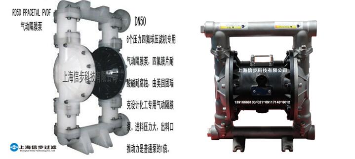 不锈钢气动隔膜泵在过滤设备的配套时,流量、扬程、功率、管径由客户任选配套。