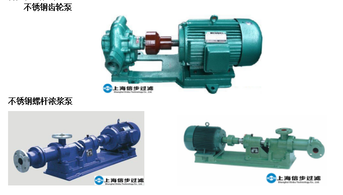 不锈钢齿轮泵、螺杆浓浆泵在过滤设备的配套时,流量、扬程、功率、管径、防爆要求由客户任选配套。